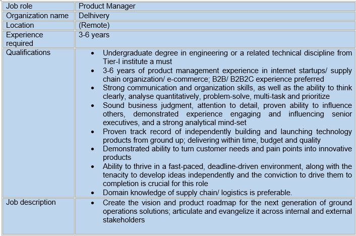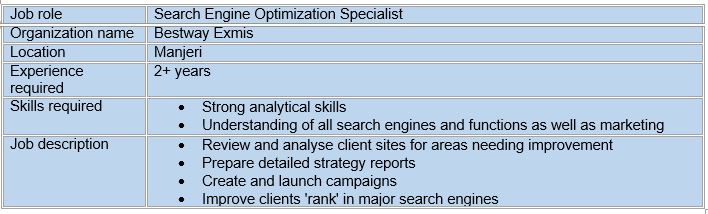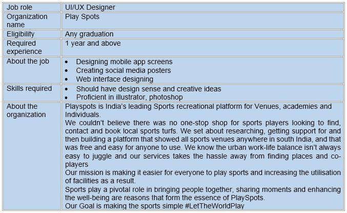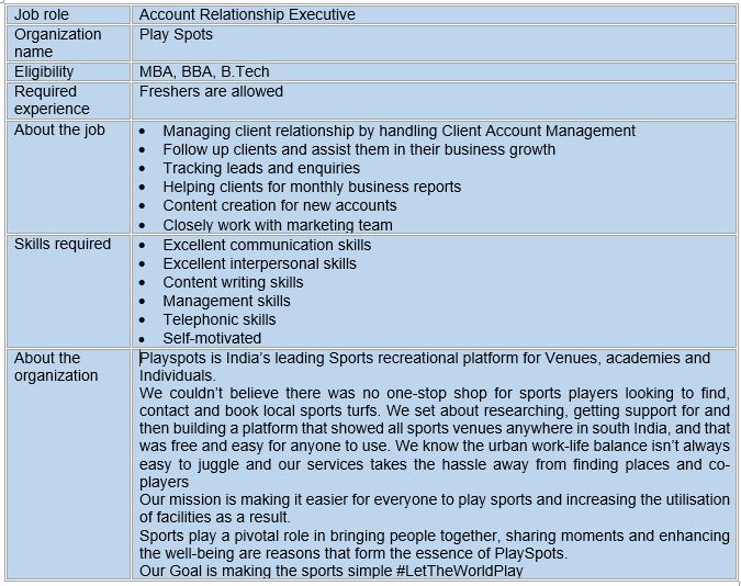 | Skills required | Integrity and ethical focus. High on energy and motivated to perform excellently. Curiosity, aptitude and attitude to learn |