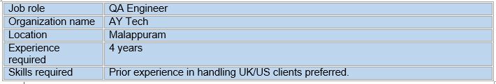 | Job and responsibilities | Startup institution in Kottakkal is looking for a professional female Commerce teacher with a minimum of three years to teach the subjects in English. Candidate must be very conversant in English. 2 days in a week in the institute and other 4 days to deliver virtual classes. |