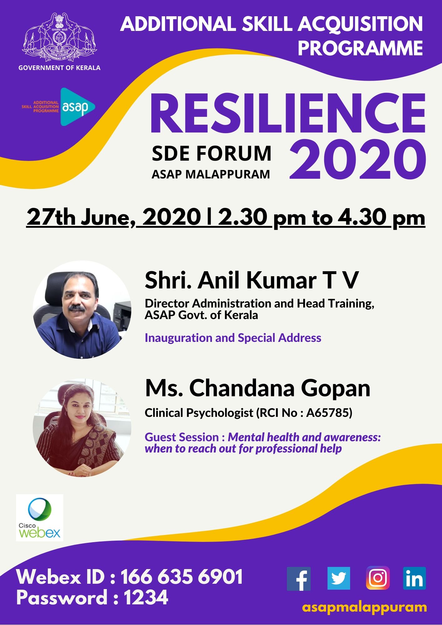 Resilience 2020 the first virtual District SDE Forum Meet of ASAP Malappuram ‘Resilience 2020’ was conducted on 27th June 2020 from 2.30 to 4.30 PM.