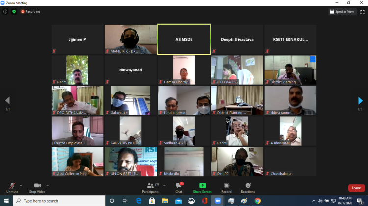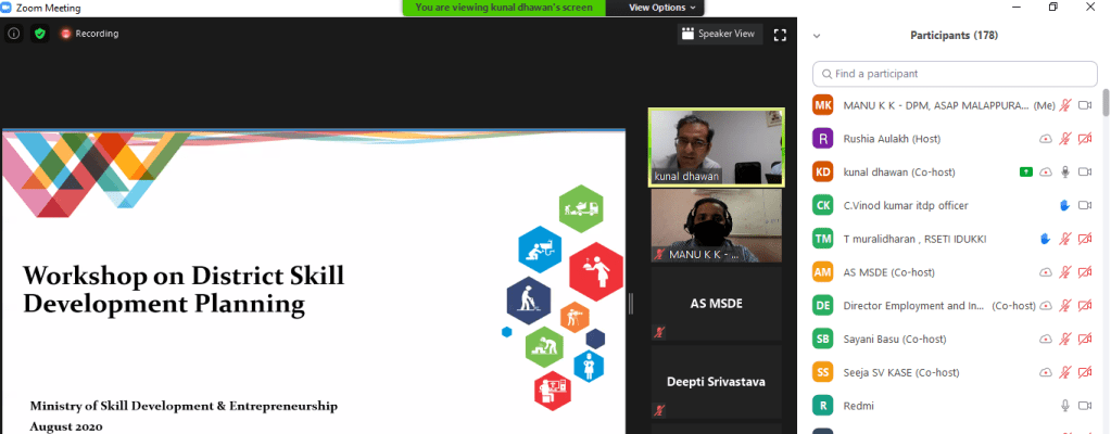 A workshop on District Skill Development Planning was conducted for the District Skill Committees across state of Kerala by the Ministry of Skill Development & Entrepreneurship Govt. of India. The workshop was conducted online on 27th August 2020 and attended by DPM Malappuram.